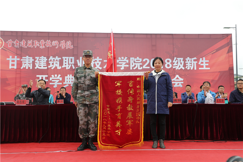 学院党委书记、院长王娟丽代表学院向部队赠送锦旗