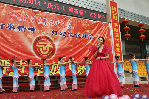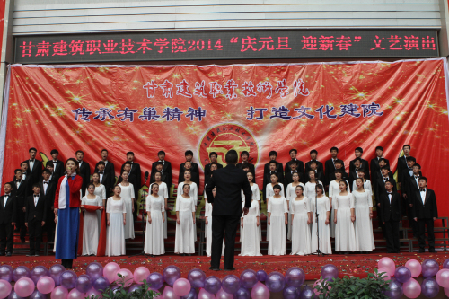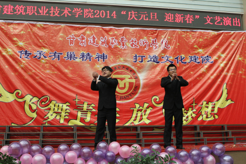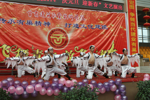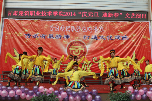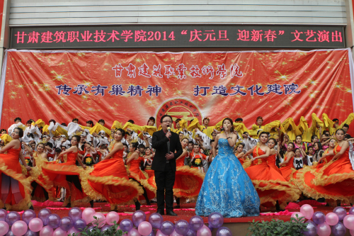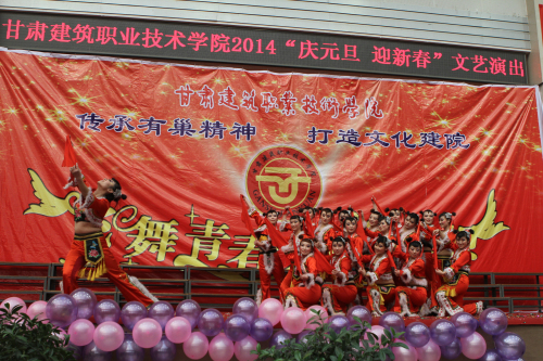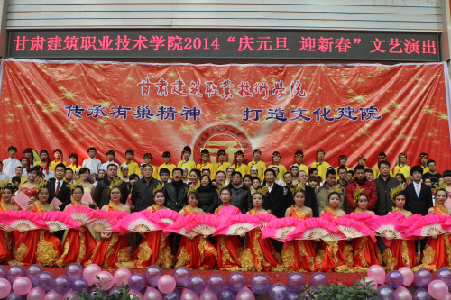 万马奔腾迎盛世,青春舞动中国梦。 2013年12月31日下午,甘肃建筑职业技术学院二〇一四“庆元旦 迎新春”文艺演出在体育馆二楼举行。此次活动由院团委牵头组织实施,我院班子成员和兰州大学团委副书记李华龙、甘肃省中医学院团委书记白江开、兰州商学院长青学院团委副书记冯涛、甘肃警察职业技术学院团委书记王启刚、甘肃资源环境职业技术学院团委书记冯永斌等嘉宾以及部分中层领导和部分师生员工2000多人观看了演出。