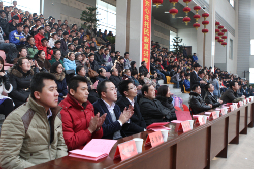 党委书记马江在致辞中对全院师生致以节日的祝福。在总结过去建院奋进和收获的一年时,他说,学院以党的十八届三中全会召开为契机,抢抓机遇,深化改革,在全院师生的积极准备和努力工作下,学院顺利通过人才培养工作评估和省级示范校建设项目验收,获得省委、省政府颁发的“甘肃省文明单位”称号,荣获“首届甘肃十大杰出职业院校”称号,被省教育厅评为“甘肃省高雅艺术进校园活动先进单位”等多项殊荣,学院各项工作都上了一个新的台阶。马书记新年伊始展望未来,他说,新的一年,学院将紧紧围绕党的十八大和十八届三中全会精神,持续深入贯彻“巩固成果、深化改革、提高质量、持续发展”的发展方针,以教学为中心,以学生为主体,加强理论学习和社会实践并重的理念,注重党团建设和思想道德建设,为社会输出更多、更好的优秀建筑人才。新的一年,充满着希望和期待,“雄关漫道真如铁,而今迈步从头越”,在这个充满竞争和机遇的时代,我们一定要兢兢业业的做好自己的本职工作,务实创新,不懈努力,共同完成中华民族的伟大复兴之梦!