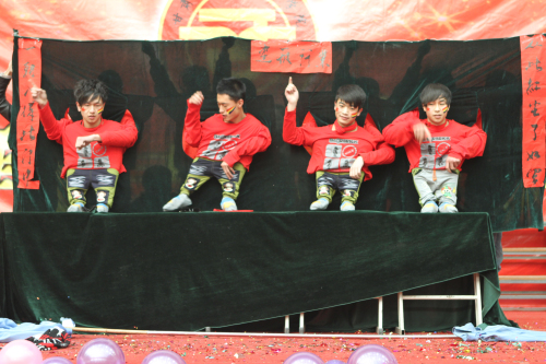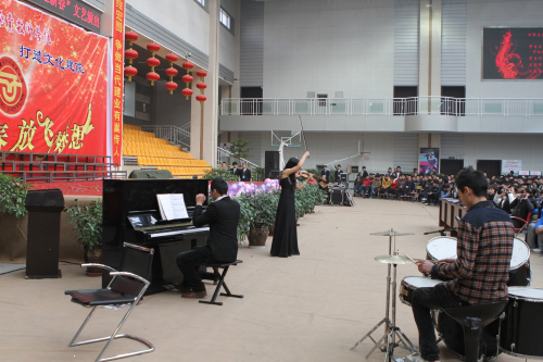 整个体育馆内到处洋溢着喜迎元旦佳节的欢乐气氛,馆内悬着“庆元旦 尽展建院学子艺术风采,绘宏图争做当代建业有巢传人;实干兴邦华夏儿女齐心共托民族复兴梦,特色兴校建院师生携手同筑建业有巢魂”四幅欢庆标语条幅,不时传出师生们欢快的掌声。