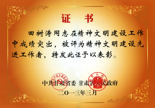 近日,甘肃省委、省政府命名表彰了第十一批全省精神文明建设先进单位和先进工作者,我院荣获“甘肃省文明单位”称号,学院院长田树涛被授予“甘肃省精神文明建设先进工作者”称号,我院精神文明建设工作又向前迈进了一大步。