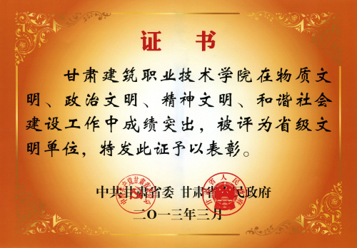 多年来,学院以“创建文明建院,争当文明师生”活动为载体,学院精神文明建设工作机构健全,目标任务明确,全院教职工广泛参与;加强硬件建设、确保经费投入,精神文明建设保障机制逐步形成;积极推进文明校园、法制校园、绿色校园、文化校园、平安校园“五园”建设,努力实现和谐校园目标;突出三项工程(理论武装工程、舆论引导工程、精神塑造程),推进学院思想建设;实施“三德”(社会公德、职业道德、家庭美德教育)教育,不断提高师生思想道德素质;推进“三个育人”(教书育人、管理育人、服务育人)活动;在学生中坚持开展“三自”活动,努力实现学生自我教育、自我管理、自我服务。学院四个文明协调发展,学院发展连续上台阶, 2008年底顺利通过教育部人才培养工作水平评估,2010年跻身甘肃省示范性高职院校建设单位行列,学院招生分数线和毕业生就业率连续多年位居省内高职院校前列,毕业生就业率多年来一直保持在90%以上。2008年以来, 我院学生在国家、省上实践技能大赛中连续取得了团体成绩和分项成绩位居省内同类院校前列的好成绩;同时我院先后荣获“全国住房和城乡建设系统思想政治工作先进单位”、“全省精神文明建设工作先进单位”、 “甘肃省师德建设先进集体”、“甘肃省优秀学生社团” 、“甘肃省帮扶工作先进集体”、 “兰州市绿色校园”、“兰州市平安校园”等多项荣誉称号。