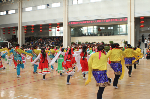 决赛大会由基础课部主任高雁晋主持,李社生副院长宣布比赛开始并在致辞中说,这次锅庄舞比赛是我院推进全员育人、加强校园文化建设和增进师生身心健康的一次盛会。值此党的十八大胜利召开之际,学院师生将通过此次比赛用我们的热情和技艺向党的十八大献礼!