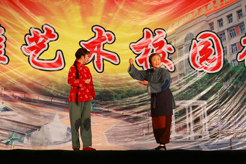 6月13日晚,甘肃建筑职业技术学院体育馆二楼灯光璀璨,座无虚席。由教育部、文化部、财政部联合主办的2012年高雅艺术进校园——国家京剧院甘肃建筑职业技术学院专场演出在这里隆重举行。国家京剧院三团常务副团长、国家一级鼓师、国务院特殊津贴享受者李金平、国家京剧院三团书记、国家一级演员徐畅、国家一级演员,“梅花奖”获得者陈淑芳和国家京剧院的艺术家们带我们一同走近大师,感受经典,陶冶情操,品味高雅。