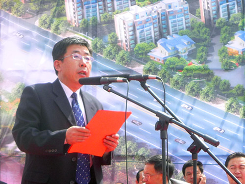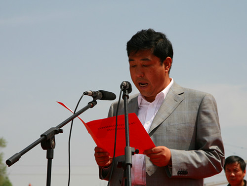 施工方代表甘肃华成建筑安装有限责任公司董事长范效彩同志发言