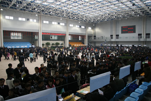 2009年11月27日,学院校园内人生鼎沸,热闹非凡。甘肃建筑职业技术学院2010届毕业生、兰州市就业局2009年冬季下岗失业人员双向选择洽谈会在这里隆重举行。共有建筑安装、监理、装饰、建筑设计、建筑材料、建筑机械、石化、水利、招投标、房地产、饮食服务、电子科技、食品加工等众多行业 100余家单位参加今天的洽谈会,学院建筑工程、工程造价、工程监理、道路桥梁工程技术、工程测量、给排水工程技术、建筑装饰工程等15个专业、 2200多名毕业生,以及兰州市七里河区3个街道5个社区300多名下岗失业人员参加了今天的双向选择洽谈会。与往届相比,今天的洽谈会通过政府就业部门与学校密切配合,扩大了用人单位范围,参加今天双向选择洽谈会的行业更多,参加单位与往年相比也有较大幅度的增加,此次双向选择洽谈会共提供岗2000余个,现场达成意向性用人协议700余份。本次毕业生、下岗失业人员与用人单位双向洽谈会取得了较为满意的效果。