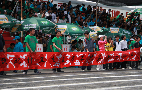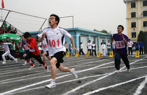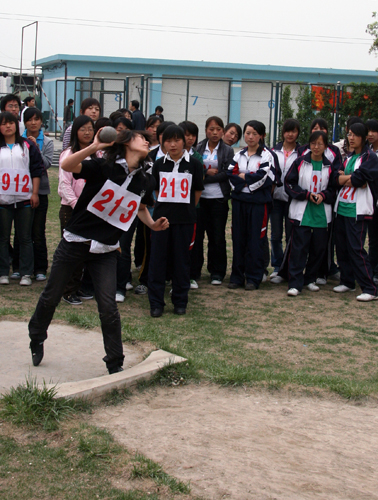 运动会现场气氛热烈,借着祖国60年大庆之际,全校师生表现出了高昂的参赛热情。运动健儿们精神抖擞,意气风发。比赛中,运动员们全力拼搏,奋力夺冠。看台上,观众们不遗余力,为各自班级的健儿加油助威!运动会进展顺利。