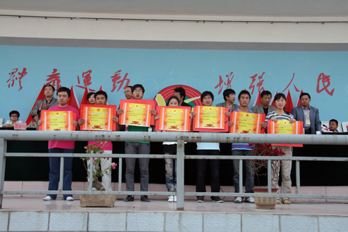 党委书记马江致闭幕辞。马江书记说,本届校运会是我校建校以来规模最大的一次运动会,有72个班级1200多名运动员参加了31个组别31个比赛项目的紧张角逐,200多名教工参加30个项目的比赛。在组委会的精心组织下,经过全体工作人员的辛勤工作、全体裁判员的公正评判、全体运动员的奋力拼搏,已经圆满地完成了各项比赛任务,取得了预期的效果。运动员们发扬了“更快、更高、更强”的奥林匹克精神,积极参与,顽强拼搏;裁判员们发扬了“公平公正”的体育竞技精神,认真投入,精确评判;同学们发扬了“团结互助”的友谊精神,呐喊助威,周到服务;三天半的比赛紧张热烈,井然有序,赛出了风格,赛出了水平!有13个班级获田径比赛团体奖,15个班级获精神文明奖,有1人次刷新学校田径运动会的纪录,有126人次分别获得单项比赛个人奖。马书记希望全院师生能把运动会上表现出来的各种精神带到今后的学习和工作中去,团结拼搏,奋力争先,务实进取,与时俱进,为我校的体育事业、为我校辉煌灿烂的明天而努力奋斗!