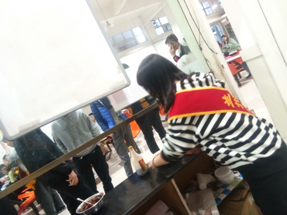 在整个帮厨过程中,志愿者们穿梭在人潮涌动的食堂里,在为同学提供了便利和帮助的同时,又替同学们对食堂的卫生与质量进行了监督和把关。哪里有需要,哪里有就他们忙碌的身影,他们用付出展示了什么叫不求回报的志愿服务,他们用行动诠释着雷锋精神。