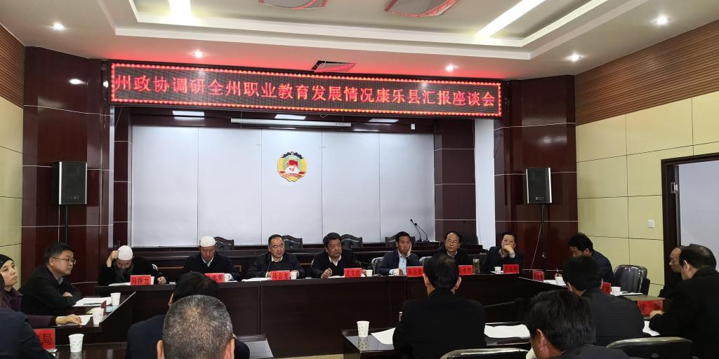 与此同时,当日下午在县政协召开的州政协调研全州职业教育情况康乐县汇报座谈会上,李君宏处长就学院职业教育发展的情况做了汇报,并表示继续做好职业教育发展工作,同时结合扶贫攻坚,为康乐县劳务培训多做贡献。此外,针对国家对职教的新要求,专业设置于当地的需求做了系统地阐述。对于学院在康乐县发展存在的问题与困难也做了汇报。