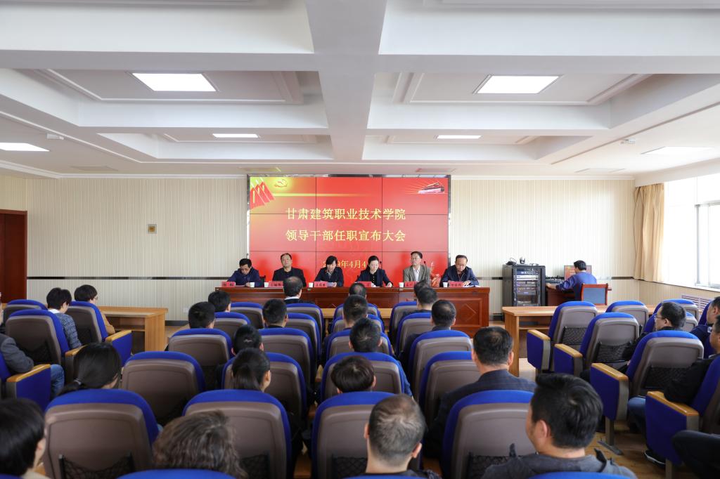 4月4日,甘肃建筑职业技术学院召开领导干部任职宣布大会。省纪委监委组织部副部长王珺、省纪委监委派驻省政府国资委纪检监察组副组长王以忠参加宣布大会,学院领导班子、中层以上干部参加大会。学院党委书记、院长王娟丽同志主持大会。