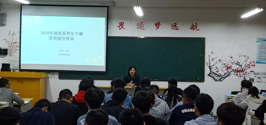 为了进一步提高学生干部的综合素质,增强自我管理,自我教育,自我服务的意识,4月11号晚上,建筑系党支部副书记蔡萍为全体学生干部召开了学生干部管理提升培训的会议。