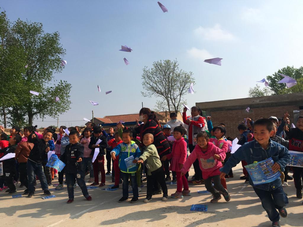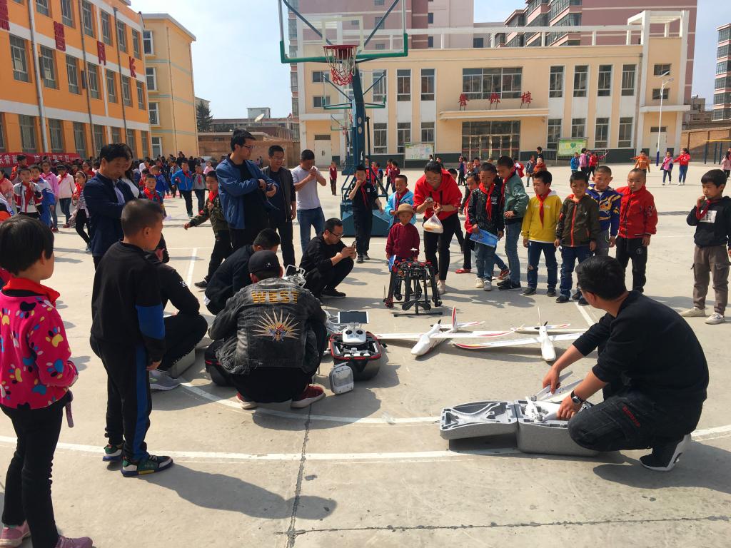 本次活动先后在塔李村、孟坝寄宿制小学、东庄村、孟坝小学开展五场次,累计参与人数2300余人。活动以“翱翔科普、雕刻梦想、启航未来”为主题,分为活动简介及无人机应用技术的发展和应用知识讲授、无人机飞行展演、梦想启航纸飞机折叠现场互动、无人机操控现场体验、赠送飞机航模纪念品和合影留念六个环节。整场活动从积极踊跃的UAV(无人驾驶飞机)知识抢答及讲授开始,伴随着六架无人机徐徐升空满校园清脆的尖叫声和热烈的掌声活动到达高潮,全校师生参与梦想启航纸飞机折叠现场互动,孩子们仔细的听,认真的学,一张张天真的小脸蛋满是喜悦,好奇的目光中满是对知识的渴求。