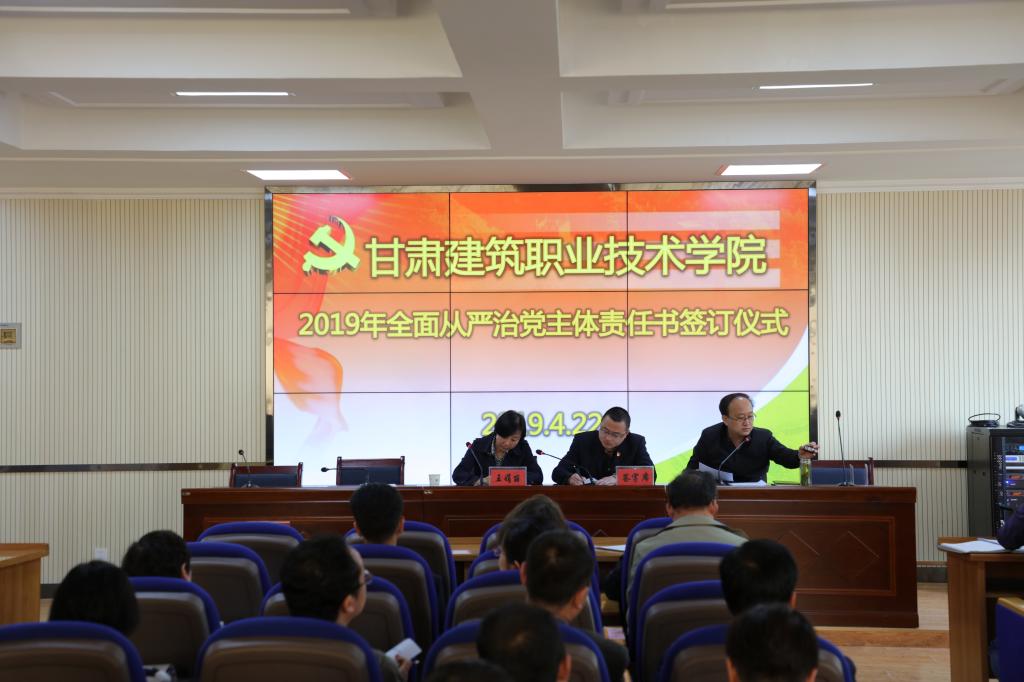 4月22日,甘肃建院2019年全面从严治党暨党风廉政建设工作会议召开。学院党委书记、院长王娟丽及领导班子、中层干部和机关党员参加了会议。学院纪委书记贺建伟主持会议。