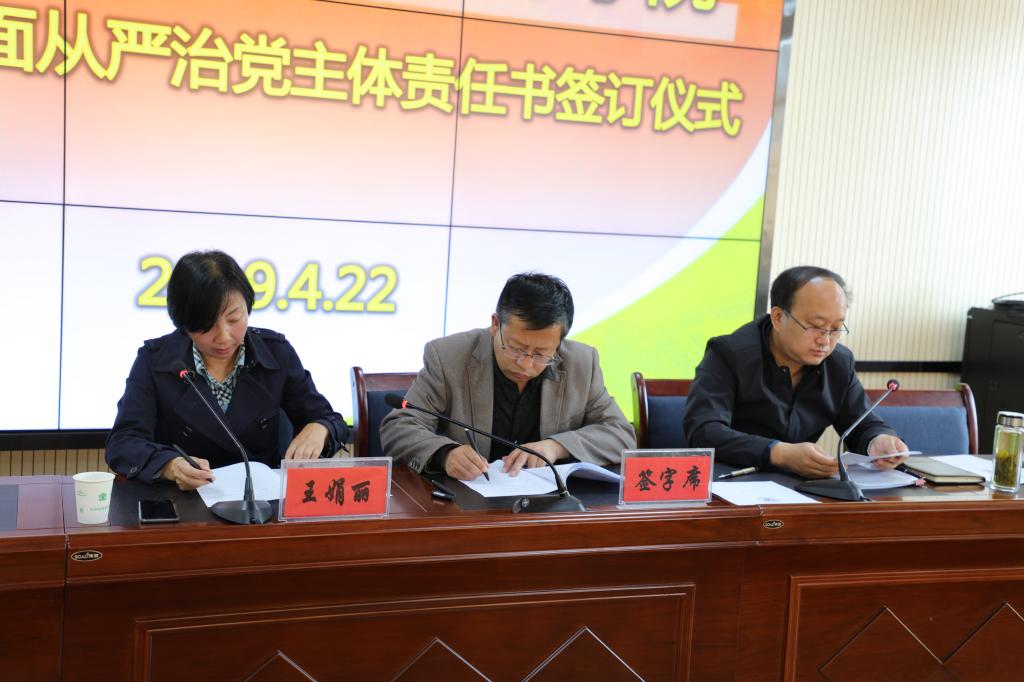 随后,学院党委书记、院长王娟丽与相关部门负责人签署了《全面从严治党主体责任书》,与全体中层干部签订《廉洁自律承诺书》。