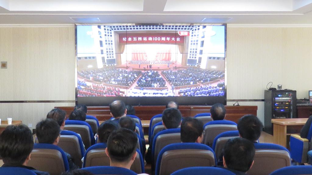 4月30日上午,甘肃建筑职业技术学院党委书记、院长王娟丽及领导班子成员,中层干部和部分学生代表观看了《习近平在纪念五四运动100周年大会上的讲话》。