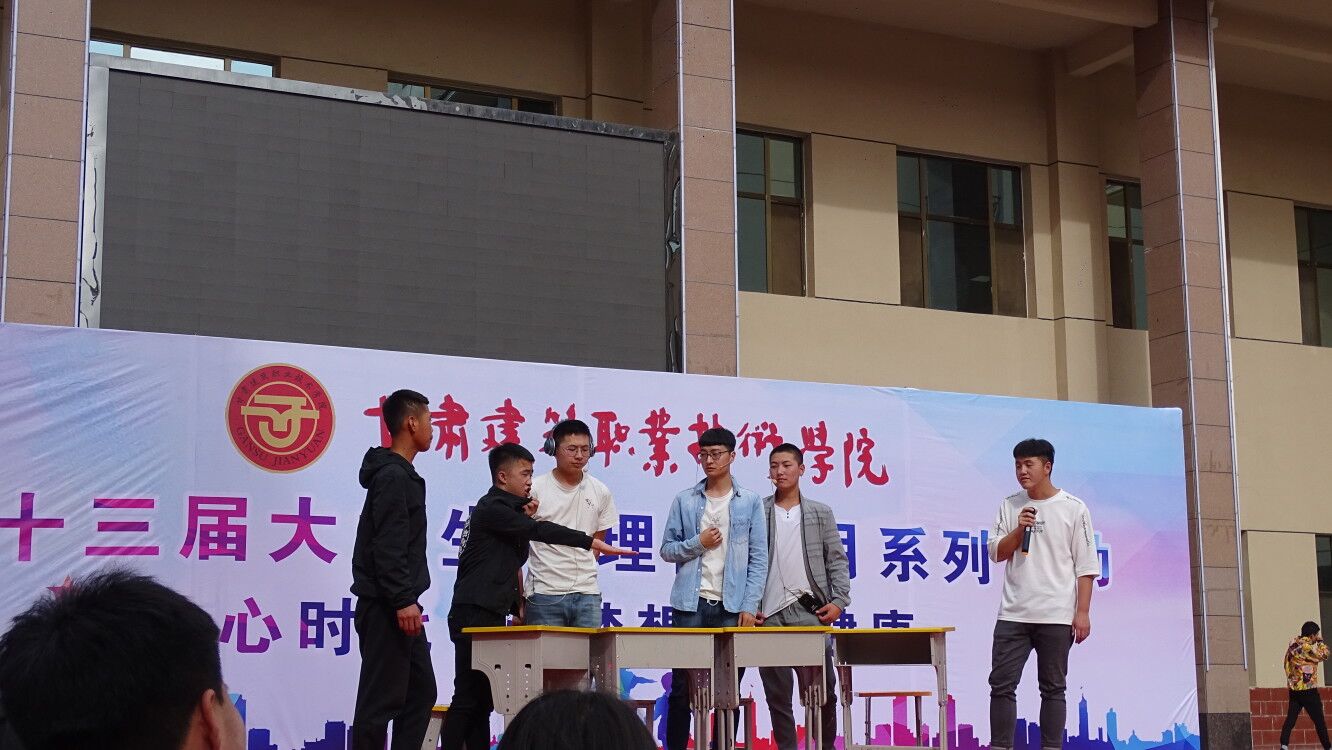 本届心理健康月系列活动的主题为“心时代,心梦想,心健康”, 活动包括:最美电子相册制作活动、团体素质拓展活动、校园心理情景剧大赛、一周一主题班级活动及专家讲座等系列活动。自4月份以来,校园情景剧共排练出43个参赛作品,经过初赛、复赛的甄选,最终选出9个优秀作品参加决赛。
