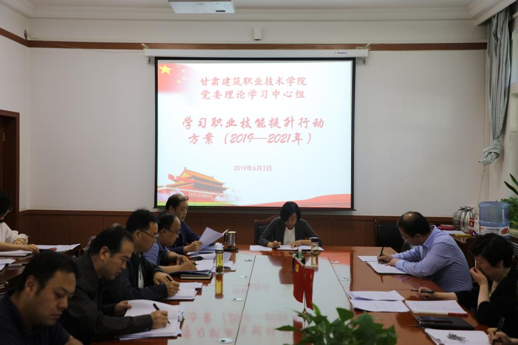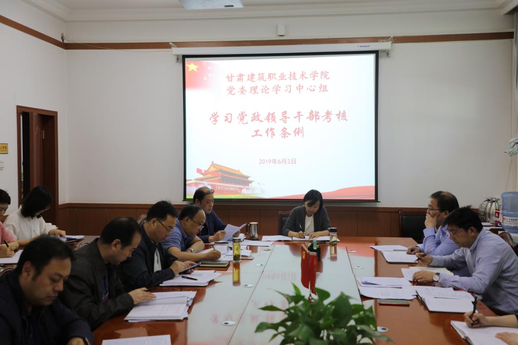 6月3日,甘肃建院党委理论中心组学习了《2019--2021年职业技能提升行动方案》《党政领导干部考核工作条例》。学院党委委员、党委书记、院长王娟丽同志参加了学习会,党委委员、党委副书记王继伟同志主持学习,中心组成员学习。