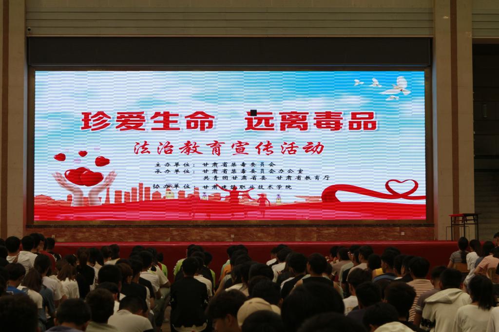 6月19日晚,一场由甘肃省禁毒委员会主办,由甘肃省禁毒委员会主办,甘肃省禁毒委员会办公室,共青团甘肃省委,甘肃省教育厅承办,甘肃建筑职业技术学院协办的“珍爱生命 、远离毒品”文艺演出在学院体育馆二楼举行。