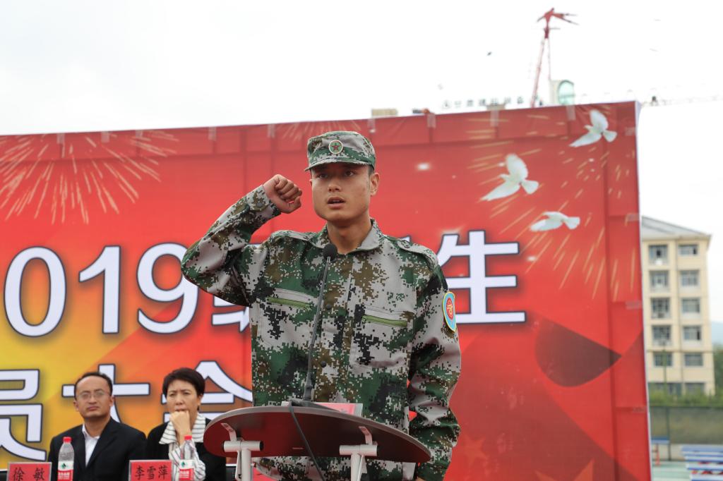 最后,参加军训的全体学生向军训团团旗宣誓,并观看了军训团教官队列队形展示。
