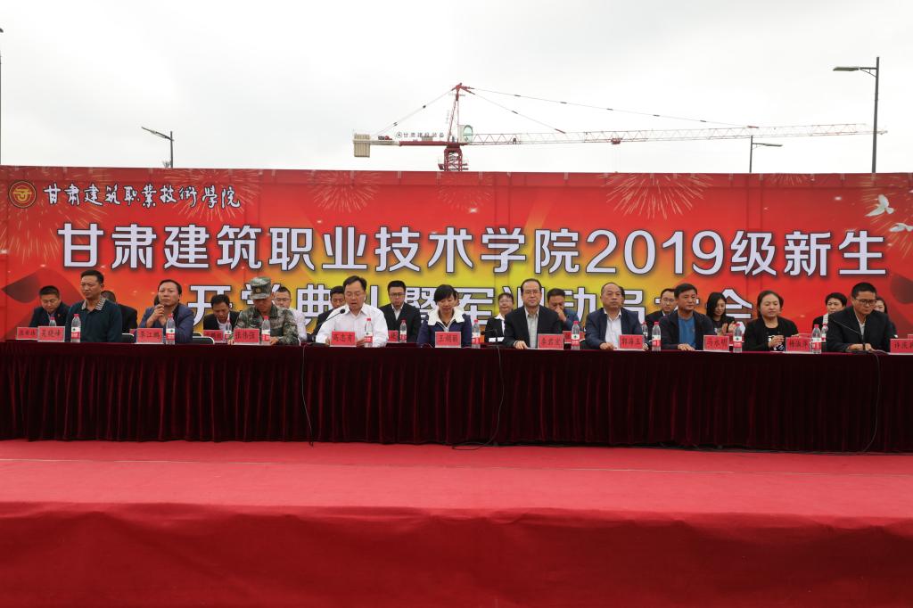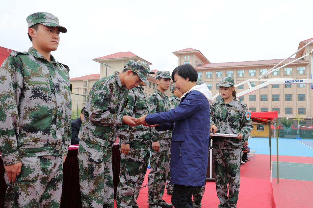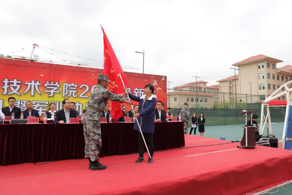 随后,学院领导为2019级新生代表颁发了校徽。学院副院长李君宏宣读了《甘肃建筑职业技术学院2019级新生军训方案》。通过此次军训,增强学生的国防观念和国家安全意识,培养学生的爱国热情和集体观念,帮助学生树立坚韧不拔的意志和艰苦奋斗的精神。学生工作处副处长许庆兵宣读《关于成立甘肃建筑职业技术学院2019级新生军训团组编的决定》。党委书记、院长王娟丽为军训团授旗。