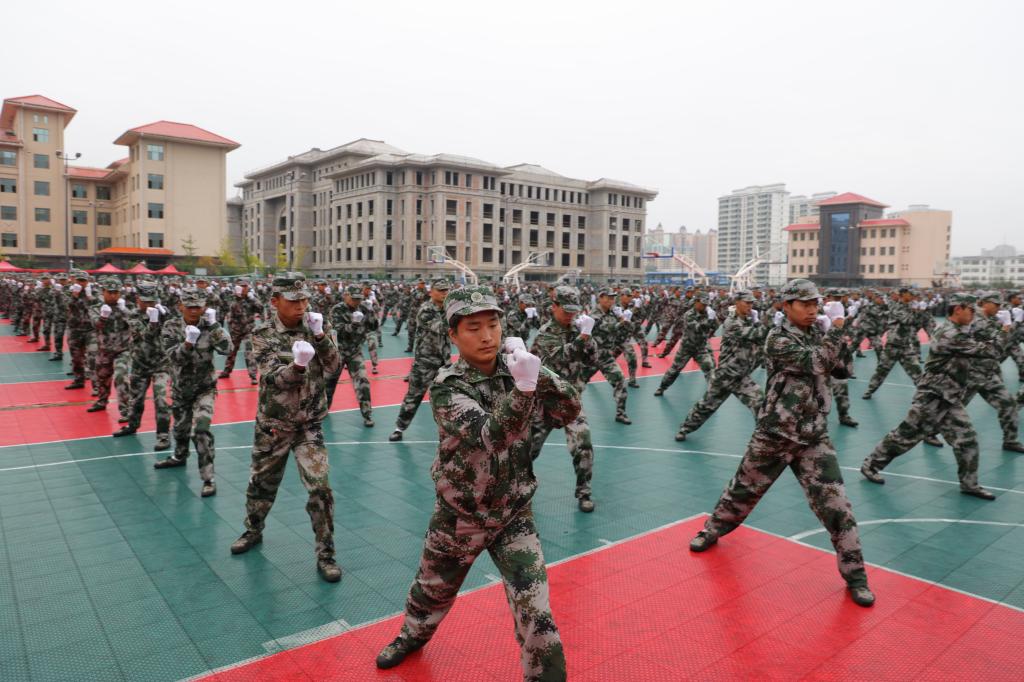 大会在雄壮的国歌声中拉开帷幕。伴着激昂的进行曲和凌冽的风雨,2019级新生昂首列队、意气奋发,向全校师生展示了他们刻苦训练的成果。尽管凉风瑟瑟、秋雨潇潇,同学们依然精神抖擞、豪情冲天,特色正步方阵步伐铿锵、口号响亮,气势如虹、震撼全场;男子擒敌拳招招发力、步步紧逼;停止间队列动作规范、整齐划一,警棍盾牌操攻防结合、特色鲜明。汇报表演精彩纷呈,表达了师生们对新中国成立70周年的祝福,为军训画上了圆满的句号。