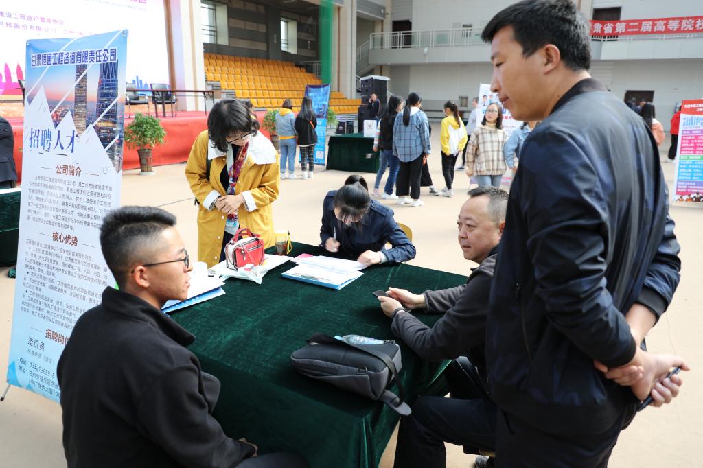 闭幕式结束后,在学院体育馆二楼进行了甘肃省第二届校企人才对接洽谈会及现场优秀人才招聘会,参会企业有来自省内外的20余家工程造价行业相关公司,学院工程造价专业学生以及其余参赛院校参赛学生参加了此次招聘会,会场气氛热烈,用人单位和学生积极沟通交流,很多学生与用人单位达成了求职意向。