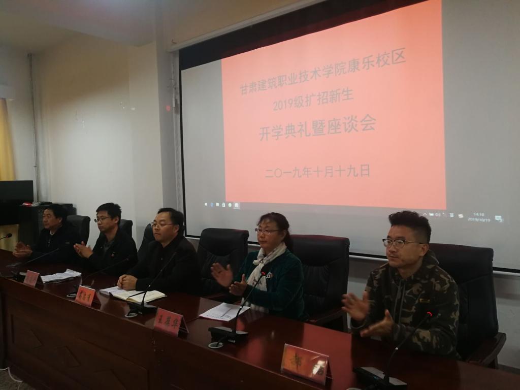甘肃建筑职业技术学院2019级扩招新生报到于10月20日下午圆满结束,兰州校区、康乐校区、张掖公路协会报到点分别举行开学典礼。学院党委副书记王继伟,党委委员、副院长许洁,党委委员、副院长高忠有分别参加了兰州校区、张掖公路协会报到点、康乐校区开学典礼。