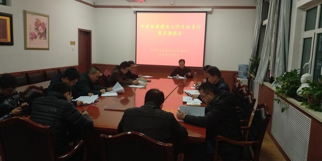 副组长高忠有首先代表学院党委书记、领导小组组长王娟丽对平安甘肃建设工作的深远意义进行了阐述,并表明了省委省政府、省委政法委、学院党委对此项工作的高度重视。并将《2019年平安甘肃建设目标责任书》《平安甘肃建设责任制考评奖惩办法》《甘肃建院平安甘肃建设工作实施方案》等相关文件为与会人员进行了解读。并对小组成员从提高思想认识、加强宣传发动、密切协作配合、加强督促指导、实行责任追究五个方面提出了工作要求。明确了通过深入开展平安甘肃建设工作,切实增强师生法制观念和安全意识,改善校园及周边治安环境,提升学院安全管理水平,完善校园及周边治安环境,提升学院安全管理水平,完善安全长效机制,有效预防和减少涉校涉生案事件、重特大安全事故、刑事案件等,营造秩序良好、校风文明、思想健康、师生安全、家长放心、社会满意的教书育人环境的工作目标。
