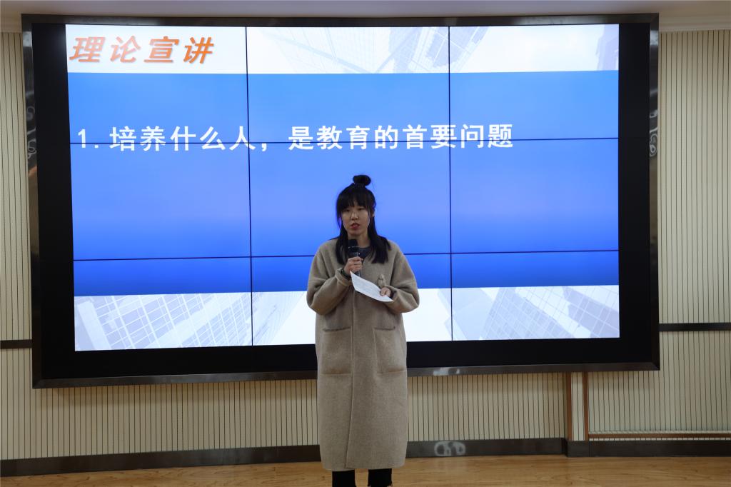 理论宣讲环节结束后,思政课教研部部长王瑛针对理论宣讲环节进行了点评,指出选手的表现比上届大赛有了明显提高,强调理论宣讲首先要会解题,阐述应该有情有理有据。先后两次获甘肃省辅导员素质能力大赛三等奖的学院专职辅导员王慧老师,结合自己的两次备赛、参赛的经历,与大家分享了自己的感受与想法。