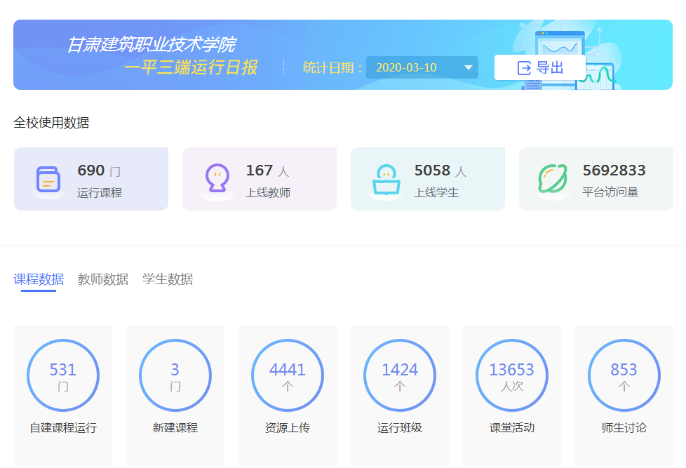 疫情就是命令,防控就是责任。学院为加强新冠肺炎疫情防控工作,贯彻教育部、省教育厅文件精神,本着“停课不停教,停课不停学”的总体目标,在全校师生的共同努力下,2019/2020学年度春季学期延迟开学期间在线教学工作于2020年3月9日全面正式启动。