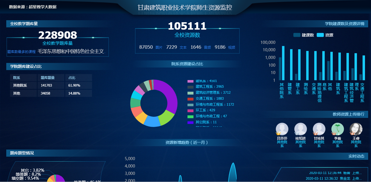 2月26日之前,在各系、部、中心的统一组织下,全体任课教师在前期培训的基础上,按时完成了本学期所有开设课程的在线课程资源(包括视频、教案、课件、电子教材、动画、试题库、案例库、项目库、课前预习要求、课中教学设计、课后习题作业、课程过程性考核要求、考勤要求及课程相关资料、班级和学生名单等)的录制、编辑和上传平台(泛雅平台)等工作;同时,各系、部、中心于2月29日之前,完成了本部门本学期所有开设课程的在线课程资源建设情况的自查和整改。