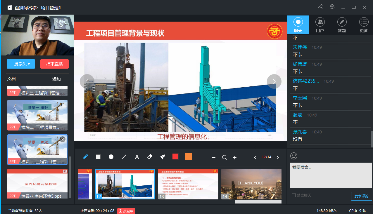 3月9日在线教学第一天,共有121位教师参与了155门课程授课,109个教学班级10763人次学生参与了在线学习和在线教学。任课教师充分利用超星泛雅平台,灵活运用学习通APP、QQ群课堂、腾讯课堂、腾讯会议、钉钉等多种教学辅助软件,以在线课程教学资源(泛雅平台)为核心,组织学生在线进行课前预习(测试)、课中学习(观看视频、动画,阅读文字资料等,有针对性的进行讨论、提问、测试等,并针对共性问题、重点、难点进行直播讲解)以及课后作业布置批改。从任课教师在线教学情况班级日报表和任课教师在线教学日报表反馈情况来看,学生在线学习、参与在线教学积极性高,上课到课率达97.5%。虽然在线学习、教学过程中存在偶尔网络卡顿现象,但各授课教师责任担当,及时启用教学预案,切换备用平台,克服各种困难,快速引导学生,灵活调整教学方式方法,保证教学效果,确保教学秩序。总体在线教学运行达到了预期效果。
