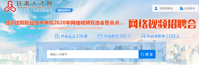 为切实做好2020届毕业生就业工作,最大限度地降低疫情对毕业生就业和用人单位招聘的影响。5月9日,由甘肃省人社厅、甘肃省教育厅主办,甘肃省人力资源市场、甘肃建筑职业技术学院联合承办,在甘肃人才网举办了“甘肃建筑职业技术学院2020年网络视频双选会暨重点群体毕业生就业推荐会”。此次招聘活动有来自北京、广东、上海、江苏、浙江、山东、新疆、陕西、西藏等10个省市区的136家建筑类相关用人单位参加,提供就业岗位5762个,活动当天在线参与的求职者1729人,线下向用人单位投递简历9087份,用人单位与求职者共发起面试洽谈3602次,活动当天在线达成初步意向性协议1883份,后续面试活动还在进行过程中。