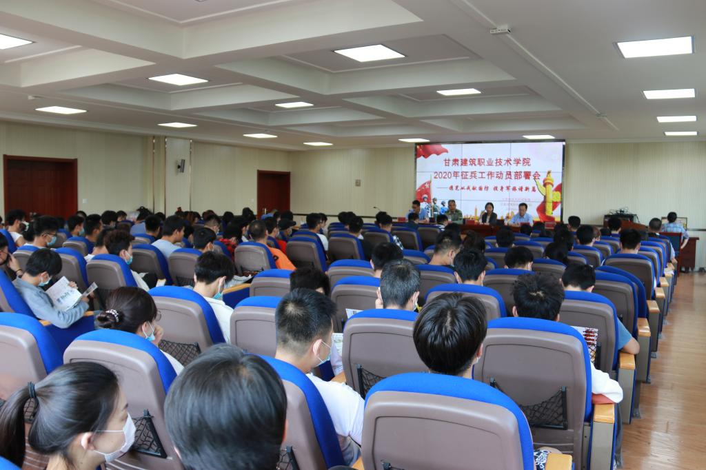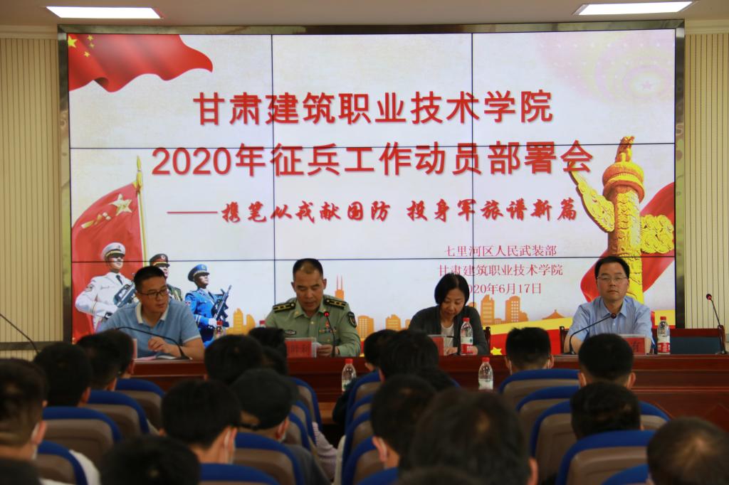 6月17日,学院2020年征兵工作动员部署会在学术报告厅召开,学院党委书记、院长王娟丽,七里河区人民武装部副部长刘胜利,征兵工作领导小组成员、六系书记(主任)、学生干事、校本部全体辅导员及学生代表等120余人参加了会议。会议由学院党委委员、副院长高忠有主持。
