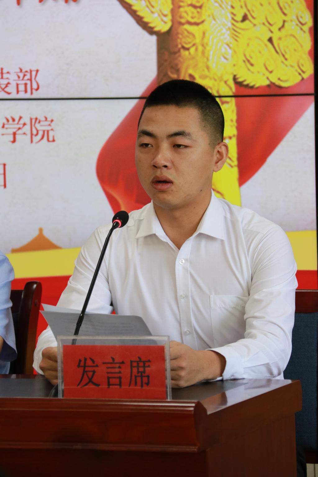 征兵工作站站长、学生工作处副处长许庆兵宣读文件