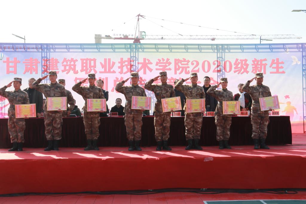 军训成果总结结束后,学院党委委员、副院长李君宏同志宣读了《甘肃建筑职业技术学院关于表彰2020级学生军训先进集体及先进个人的决定》;主席台领导为获奖集体和个人颁发了荣誉证书与奖品,学院党委书记、院长王娟丽代表学院向中国人民解放军赠送了“军校合作建平安校园,无私奉献育祖国栋梁”的锦旗。随后,2020级参训学生代表桂荣强作了热情洋溢的发言,分享了自己的军训中的感受与收获,号召同学们在未来的学习生活中保持军训中养成的良好习惯,争做优秀建院人。军训团团长薛东在发言讲话指出,学生们听从指挥,努力拼搏,克服困难,严格要求自己,严守军训纪律,以最佳的精神状态圆满完成了此次军训任务,感谢学院领导对部队的关心。