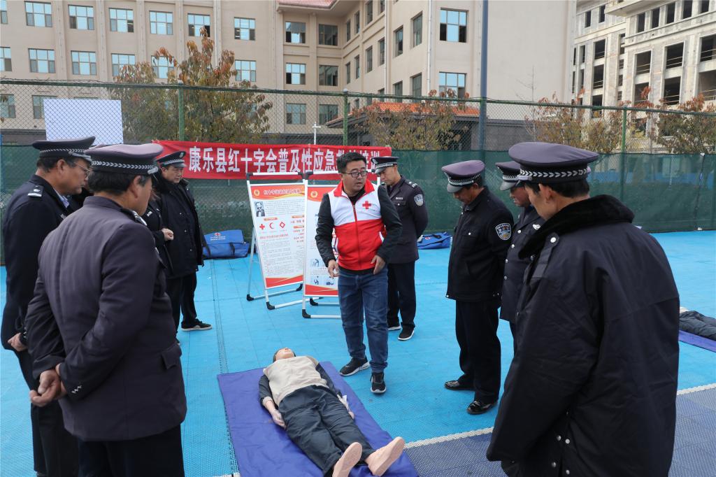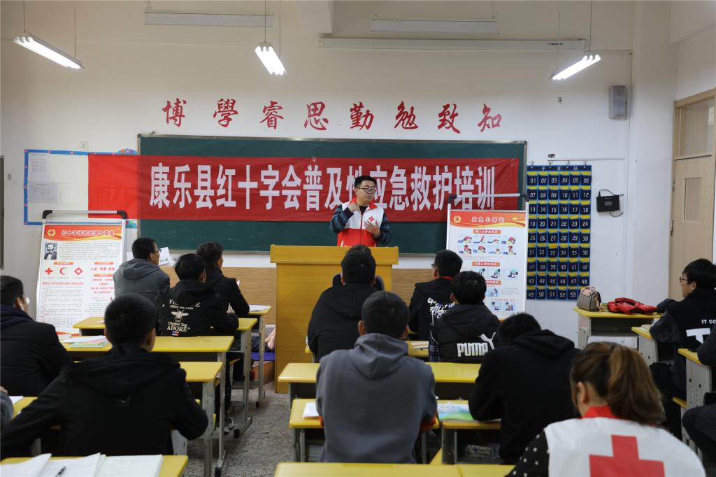 与此同时康乐县红十字会应急救护培训也在康乐校区顺利展开。为了提高培训效果,此次讲座特地为师生们准备了急救培训书籍、培训材料、宣传展板、应急救护包,使广大师生顺利的掌握相关理论知识和技能。此次应急救护培训的主要内容包括如何在踩踏事件中进行自救、急救反应系统的启动、成人心肺复苏技术以及呼吸道梗阻的识别与急救,以帮助大家在第一时间内应对发生在学校、家庭或公共场所的突发状况,为挽救病人生命争取时间和机会。培训分为理论讲授和实践操作两部分。