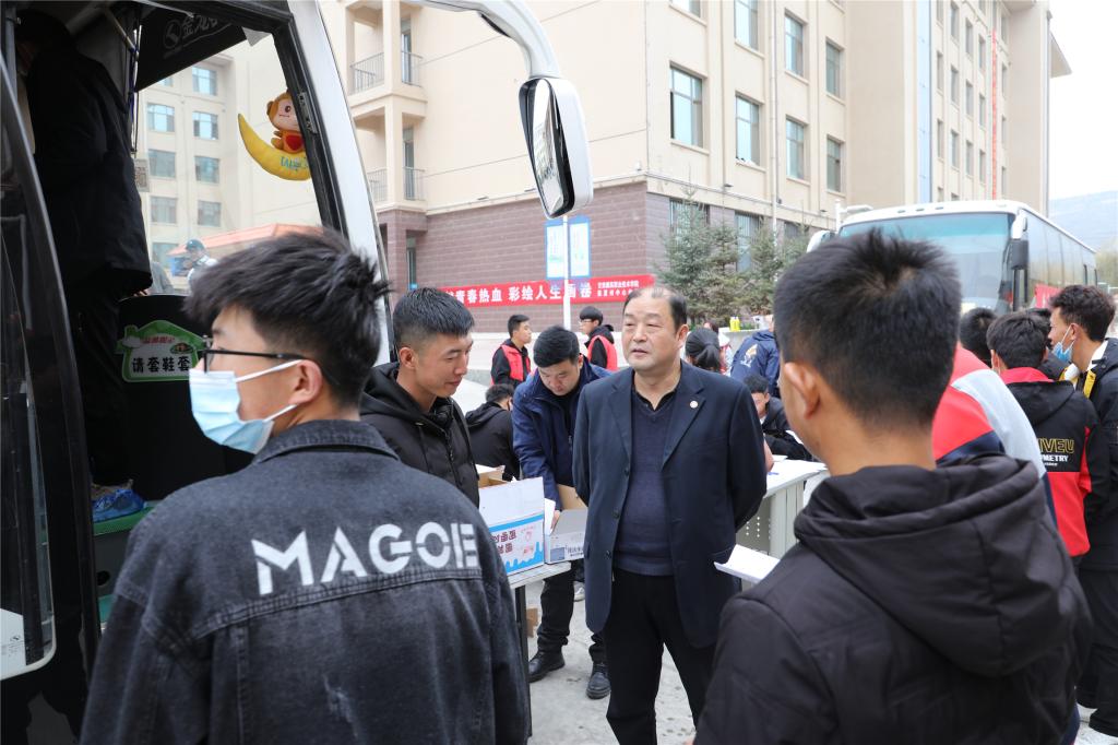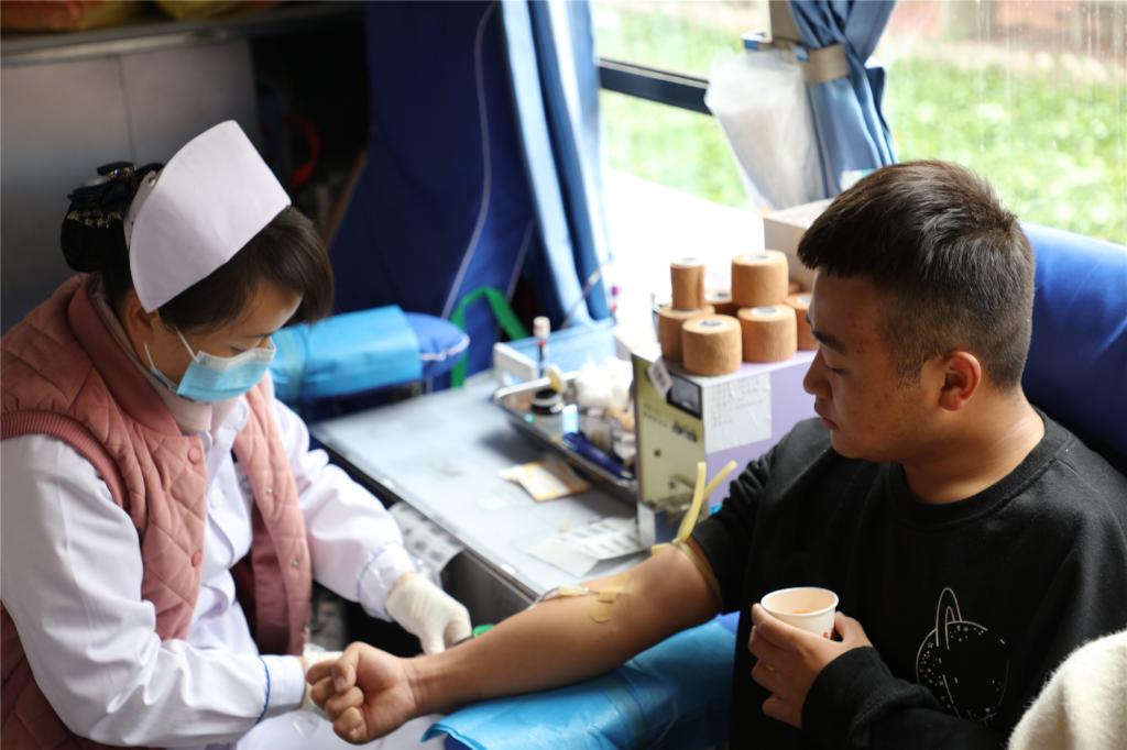在献血活动期间,学院党委副书记王继伟深入活动现场关心慰问献血同学。