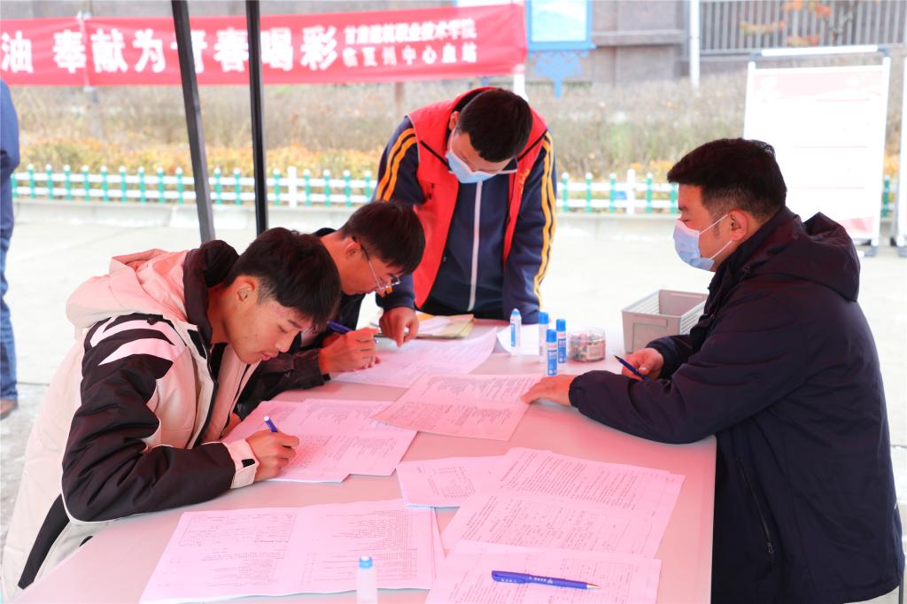 11月4日10时许,临夏州中心血站采血车开进甘肃建筑职业技术学院康乐校区,广大学子们早已有序地排起了长队,争先献血。同学们在医务人员的引导下,依次进行了信息登记、体质检查、血液类型检验、静脉采血等环节。