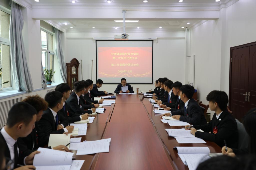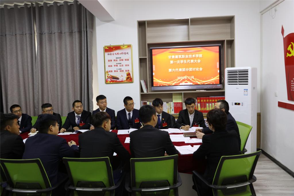随后,各代表团分别在各自会场学习讨论了领导讲话,讨论了甘肃建筑职业技术学院学生委员会候选人预选名单、《甘肃建筑职业技术学院学生会章程》《甘肃建筑职业技术学院学生会从严治会制度》《甘肃建筑职业技术学院学生会述职评议制度》《甘肃建筑职业技术学院校级学生会对院系学生会工作指导机制》,征集了会议提案报告。大会秘书处组织审议了甘肃建筑职业技术学院2020届学生委员会候选人建议名单;审议总监票人、监票人名单;审议总计票人、计票人名单。