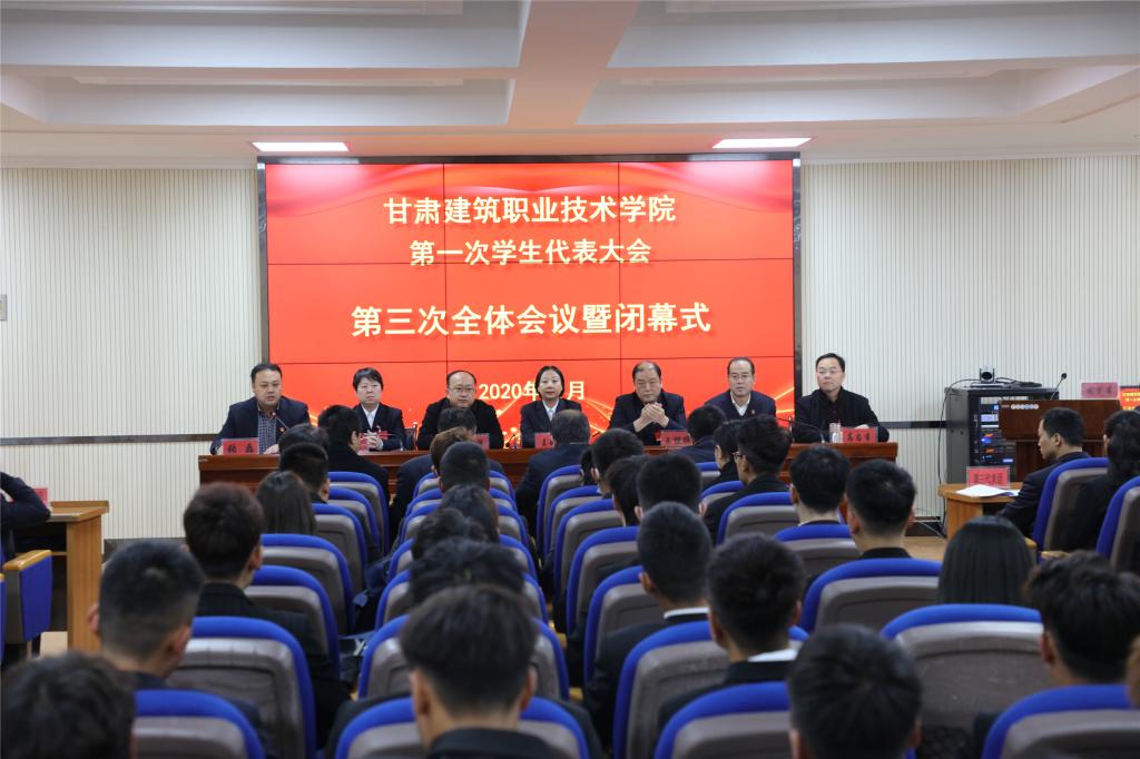11月22日,甘肃建筑职业技术学院第一次学生代表大会第三次全体会议暨闭幕式举行。学院党委书记、院长王娟丽及领导班子成员,相关部门负责人,学生代表等参加了闭幕式,团委书记张磊主持。