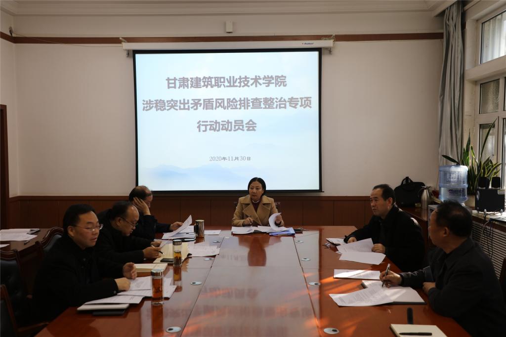 与此同时,还召开了甘肃建筑职业技术学院2020-2021学年度领导干部安全管理包抓机制安排部署专题会议,甘肃建筑职业技术学院涉稳突出矛盾风险排查整治专项行动动员会,党委委员、副院长高忠有安排部署了会议具体安排,要求认真组织贯彻落实会议精神。