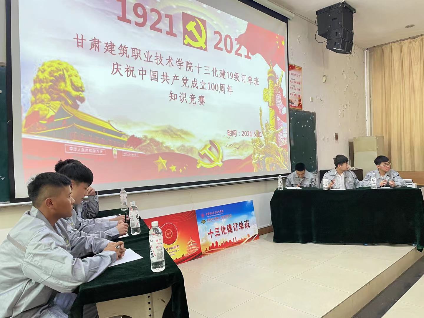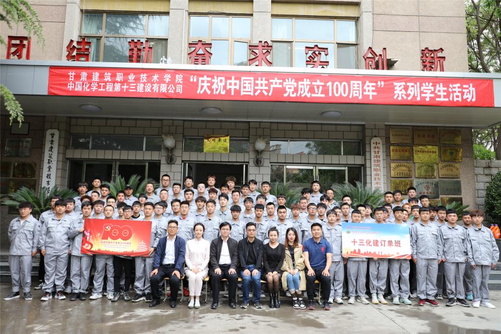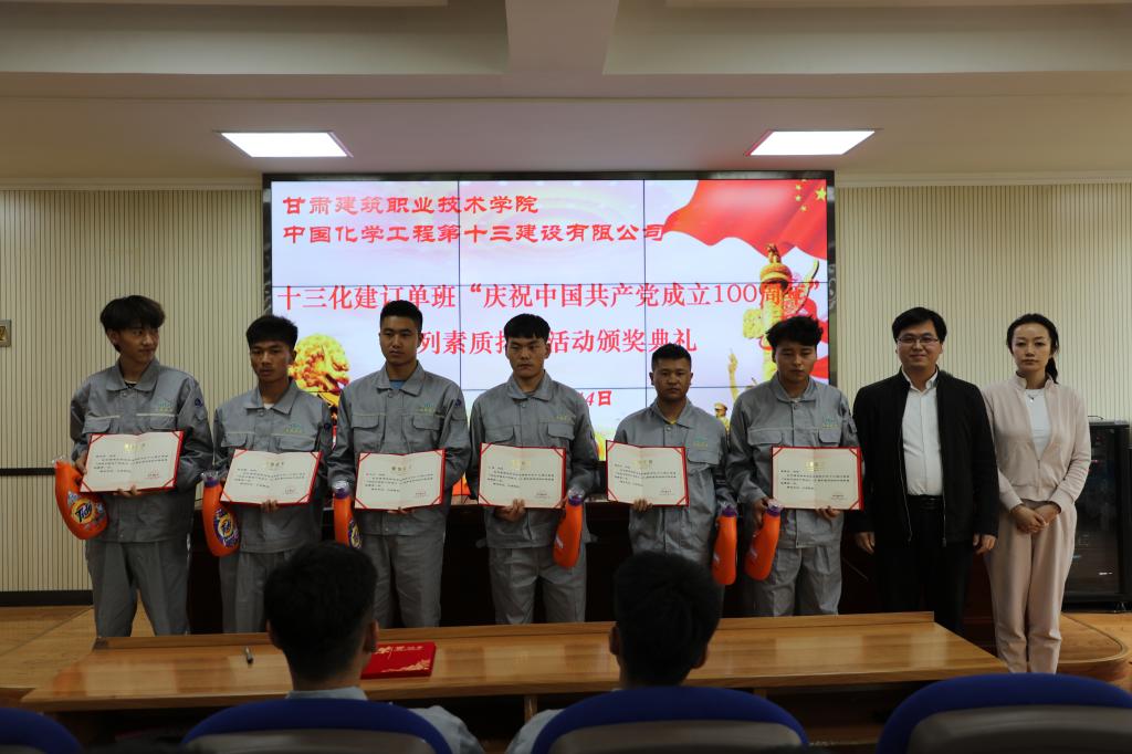 2021年5月14日,学院十三化建订单班“庆祝中国共产党成立100周年”系列学生素质拓展活动颁奖典礼在学院校本部2号教学楼三楼学术报告厅举行。订单企业中国化学工程第十三建设有限公司党委组织部部长、人力资源部主任、高级经济师刘美双、学院招就处副处长吴沛晟、建工系主任李维敦、环工系主任邱琴忠、党总支书记王亮、2019级订单班班主任及全体学生参加,典礼由建工系就业干事朱玉平主持。