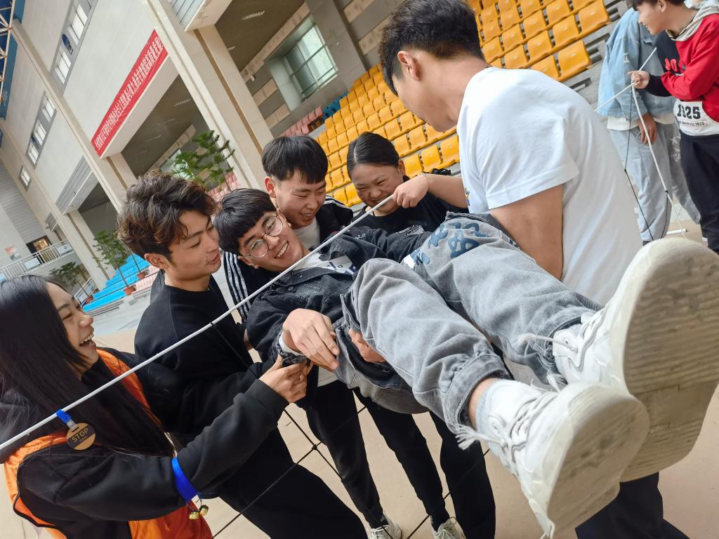 此次团队素质拓展训练活动涵盖自信力提升、情绪管理、团体动力建立、团体凝聚力建设四个主题,由战国七雄、有轨电车、数字城堡、能量传递、呼吸的力量、不倒森林、水平云梯、急速60秒等27项专业拓展活动组成。各系各班级积极报名参加训练活动,同学们在开展活动的过程中,了解活动规则,商议具体对策,明确团队分工,开展团结协作,做好协调保护,在班级与班级之间、班级各小组之间展开了激烈的单项竞赛。带队老师和同学们全情投入,体现出了积极向上的班级精神风貌和较强的团队凝聚力。在活动感悟分享环节,同学们表示,通过参加训练活动,能够感受到小组成员之间传递的成长关切与温暖,增强了他们的环境适应能力与创新协作能力,激发了同学们的积极心理潜能和自我实现的渴望。