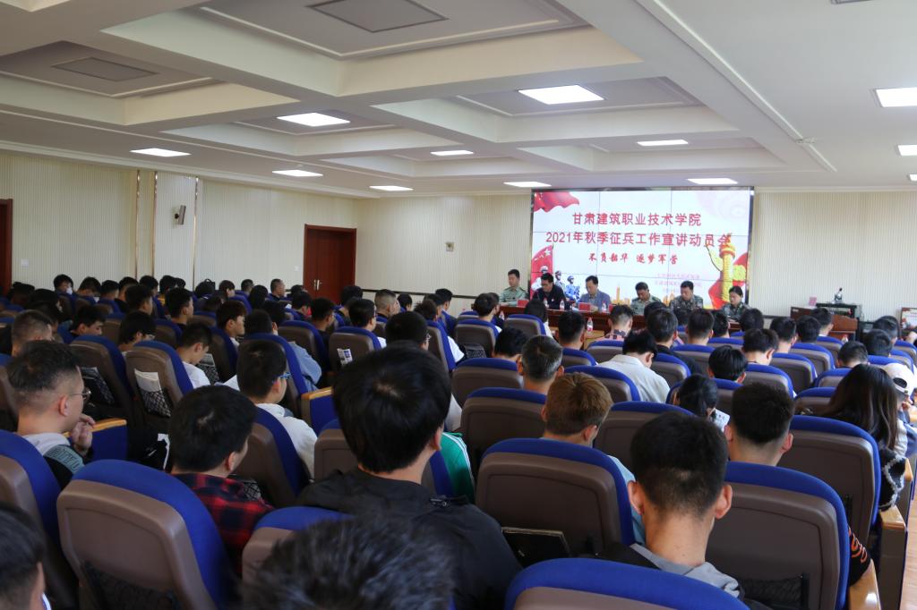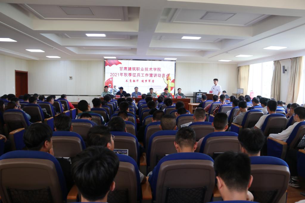 5月25日上午,学院2021年秋季征兵工作宣讲动员会在学术报告厅顺利召开。七里河区人民武装部部长谢宏胜、政委舒锋同志,晏家坪街道人武部部长李慧同志及学院党委委员、副院长高忠有出席会议,六系书记、学生干事、辅导员及班级学生代表共计200余名师生参加了会议,大会由学生工作处处长、征兵工作站站长许庆兵主持。
