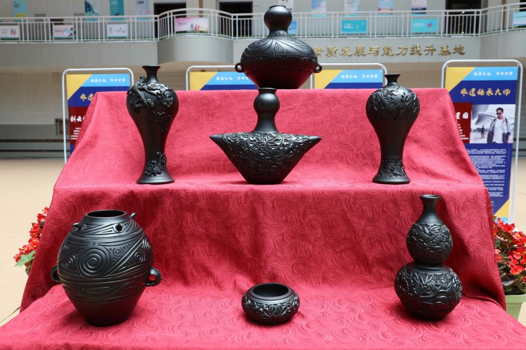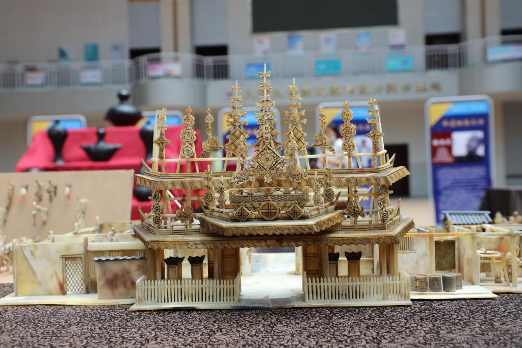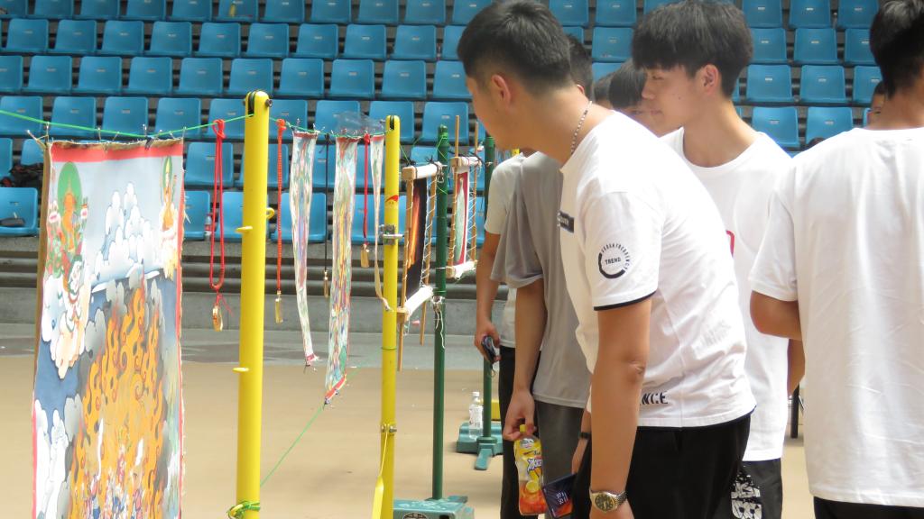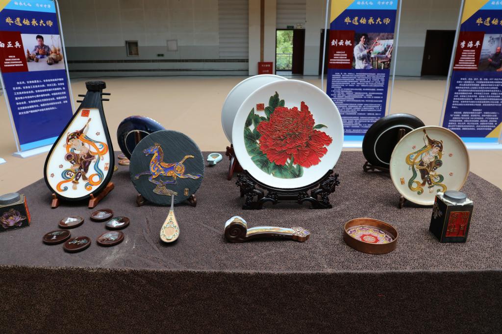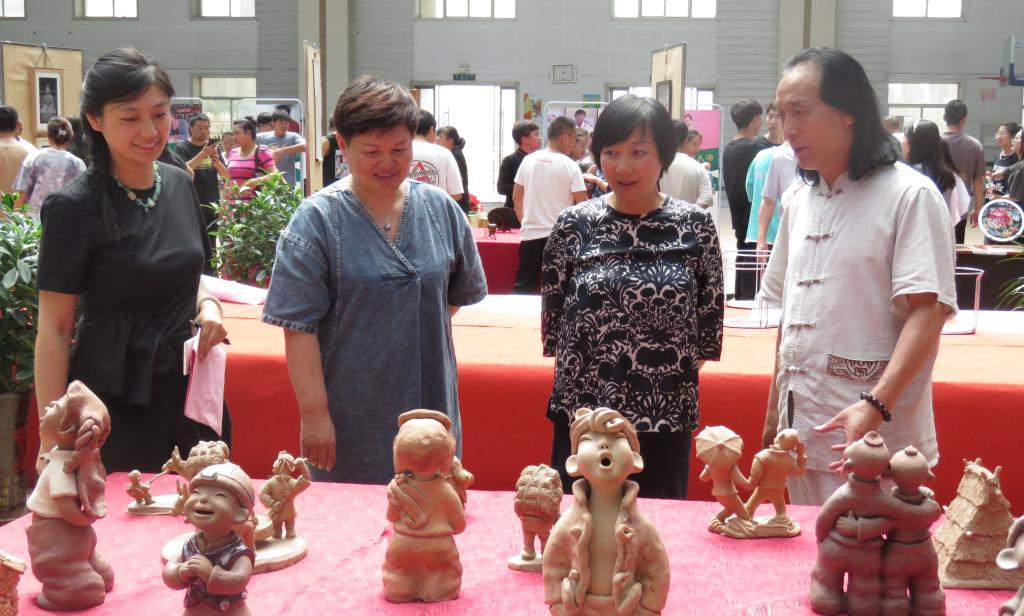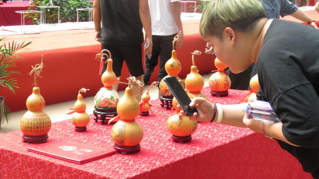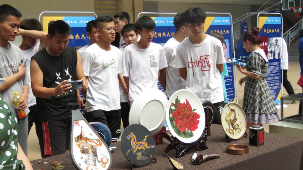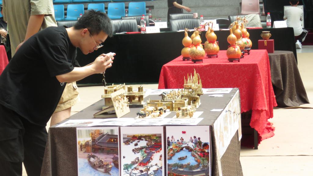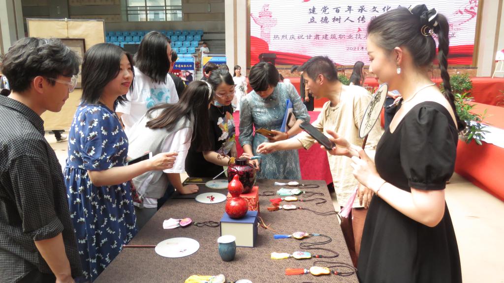 随后,非遗文化沙龙活动开启,在成立仪式现场,各展台陈列了泥塑、壁画、葫芦雕刻、木雕、收雕、剪纸、掐丝珐琅、洮砚、刺绣、麦秆画、唐卡、牛角微雕等作品,师生们津津有味的观大师作品、听大师讲解,沉浸在了历史文化的“活化石”记忆中,享受着“非遗”作品带来的心灵滋润和慰藉。