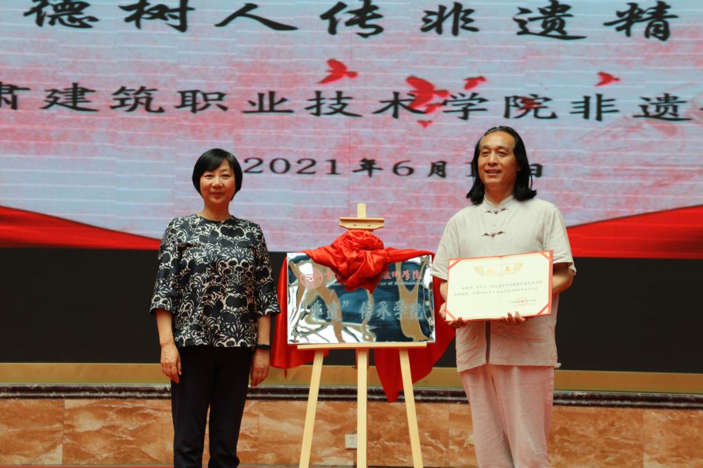 王娟丽同志宣布“非遗”学院成立,并与常天平老师进行揭牌。