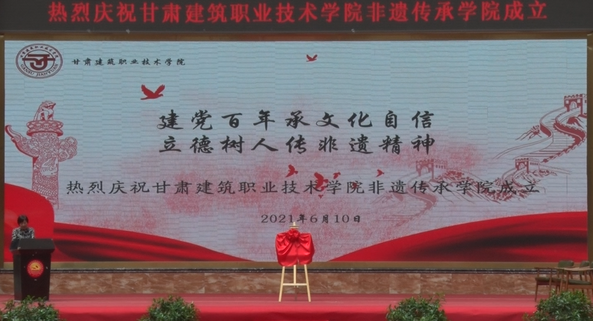 李君宏同志宣读《中共甘肃建筑职业技术学院委员会关于成立“非遗”传承学院的通知》时讲到,为贯彻落实全国职业教育大会精神,落实“技能甘肃”工作任务,推进职业教育提质培优行动计划,提升职业教育增值赋能,深化我院“非遗”文化落地生根,“大国工匠”精神传承创新,成立甘肃建筑职业技术学院“非遗”传承学院。“非遗”传承学院属于学院教学、教辅机构,为学院二级单位。由建筑系负责开展具体工作。主要职责为:秉承文化传承的使命,推动传统文化的创造性转化、创新性发展,弘扬大国工匠精神,传承文化育人理念;提升学生的就业创业能力,技能传承大师进校园进课堂,通过文化沙龙、教育教学等活动,提升学生的技能训练水平;通过“非遗”技能课程的开设,完善人才培养方案。作为校本课程,面向全校开设,丰富素质拓展课和选修课内容。