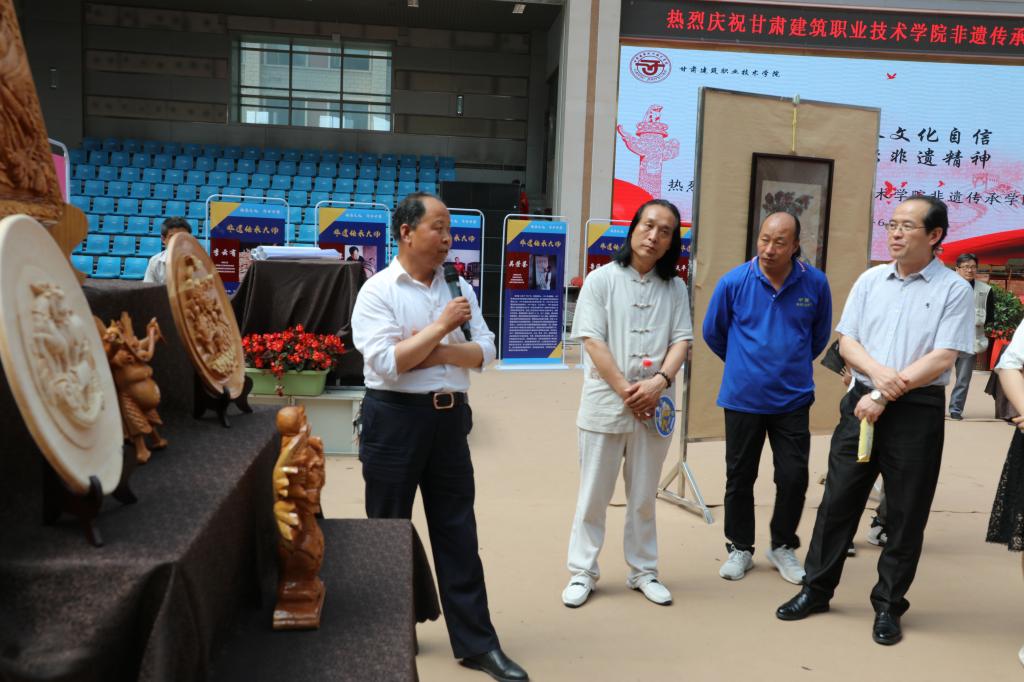 “非遗”传承人代表常天平致辞时讲到,非遗学院的成立,凝聚了太多人的心血,体现了各位非遗传承人既是传承者,也是传播者,又是推动者,此次非遗文化进高职院校,标志着校企合作共同打造一个传播非遗文化的平台,为优秀的学子心口相授,把璀璨夺目的非遗技能传承给阳光灿烂的优秀学子。非遗传承人积极发挥优质资源,把甘肃建筑职业学院作为基地,将以“工匠精神”的精髓内化于心,外化于行,培养出更多优秀的非物质文化遗产传承人,将非遗传承发扬光大。